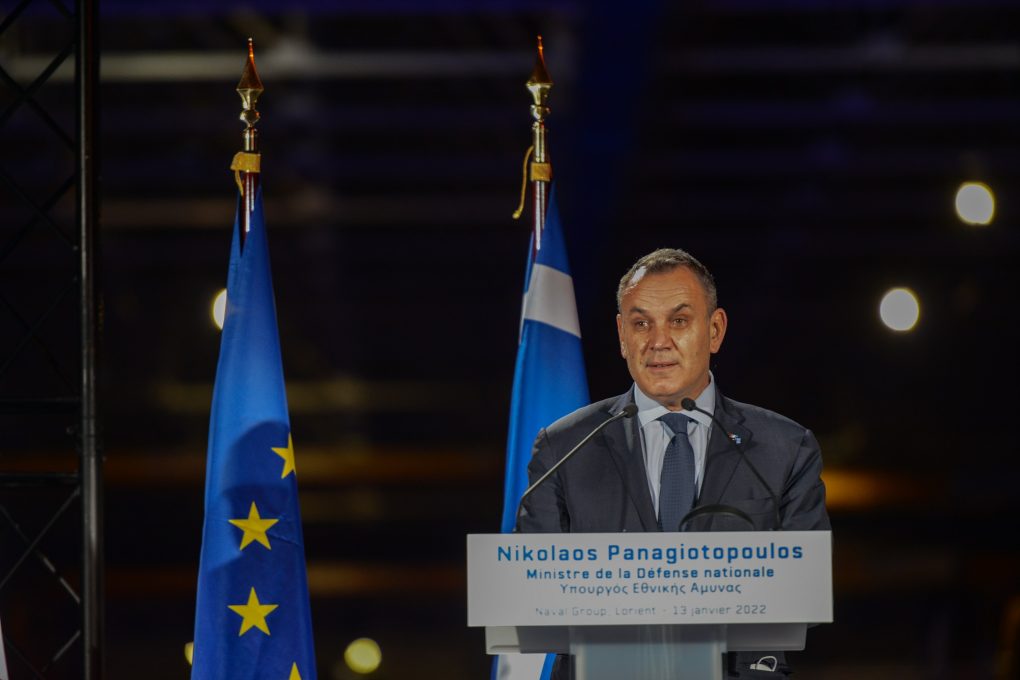 Αποτελεί ιδιαίτερη τιμή και χαρά, να ευρίσκομαι σήμερα, εδώ στις εγκαταστάσεις της NAVAL GROUP, στη Λωριάν, όπου πρόκειται να ναυπηγηθούν οι τρεις φρεγάτες Belharra, τις οποίες θα προμηθευτεί το Ελληνικό Πολεμικό Ναυτικό, με δυνατότητα να προμηθευτεί ακόμα μία.