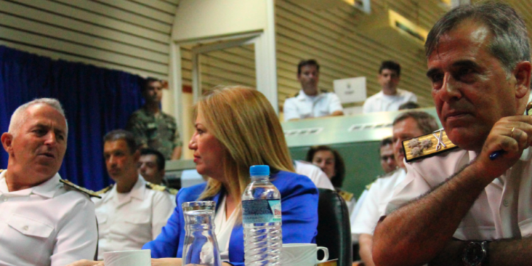 Η Αναπληρωτής Υπουργός ενημερώθηκε από τον Αρχηγό ΓΕΝ Αντιναύαρχο Ευάγγελο Αποστολάκη ΠΝ, τον Αρχηγό Στόλου Αντιναύαρχο Παναγιώτη Λίτσα ΠΝ και ανώτατους αξιωματικούς του Πολεμικού Ναυτικού.