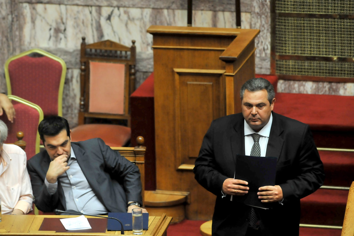Κατά τη διάρκεια της μεταμεσονύκτιας συζήτησης στη Βουλή, ο Πάνος Καμμένος ήταν εκνευρισμένος. Μετά από την ολοκλήρωση της τοποθέτησης του πρωθυπουργού ,ο Καμμένος είχε συνομιλία μαζί του. Αμέσως μετά κατέβηκε στα έδρανα και ακούστηκε εκνευρισμένος να λέει σε βουλευτές του ότι πλέον προσανατολίζεται να ψηφίσει όχι. Λίγα λεπτά μετά αποχώρησε από την αίθουσα ακολυθούμενος από τον Νίκο Παππά και τον υπουργό Οικονομικών Ε.Τσακαλώτο. Τι ειπώθηκε εκτός της αίθουσας δεν είναι γνωστό, αλλά αργότερα ο υπουργός Οικονομικών διαβάζοντας σημείωμα ,είπε στην Βουλή ότι οι όποιες περικοπές στην Εθνική Άμυνα θα γίνουν σε εξοπλιστικά κονδύλια και σε καμία περίπτωση δεν “ακουμπήσουν” το προσωπικό. Είπε συγκεκριμένα ότι δεν υπάρξουν μειώσεις προσωπικού.