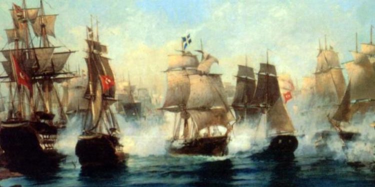 Τέσσερα πλοία, όμως, του Αντώνιου Κριεζή, του Ανάργυρου Λεμπέση, του Λεονάρδου Θεοδωρή και του Λάζαρου Παναγιώτα, μάλλον από κακή συνεννόηση, παράκουσαν και έπλευσαν ανατολικότερα από τα υπόλοιπα ελληνικά πλοία, με συνέπεια να βρεθούν ανάμεσα σε εχθρικά πλοία. Αμέσως, ο Αντώνιος Κριεζής άρχισε να κανονιοβολεί τα εχθρικά πλοία, τα οποία συνέχισαν τον πλου τους. Η ναυμαχία είχε αρχίσει.