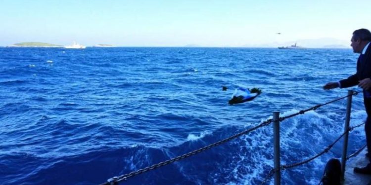 Στα Ίμια ο Καμμένος – Ρίψη στεφάνου για τους 3 ήρωες Αξιωματικούς του ΠΝ