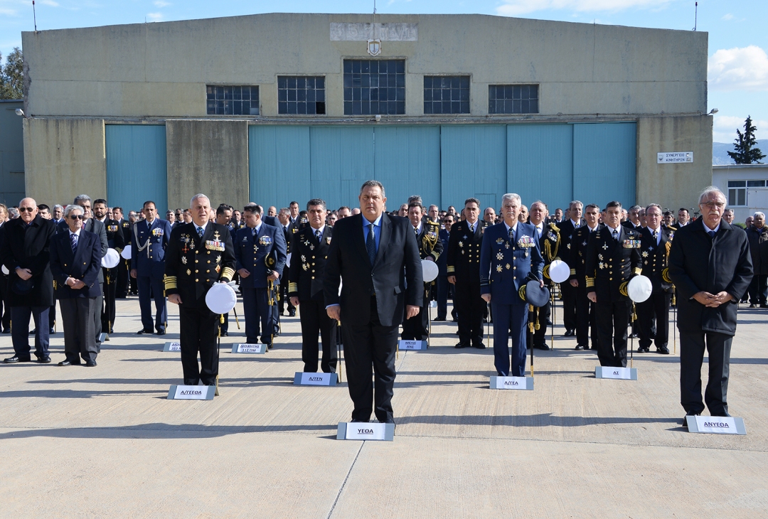 Ο υπουργός Εθνικής Άμυνας εξήρε το έργο του προσωπικού των Ενόπλων Δυνάμεων, χάρη στο οποίο, όπως τόνισε «άλλαξε το μάτι με το οποίο βλέπουν την χώρα μας εχθροί και αντίπαλοι», ενώ προανήγγειλε εξελίξεις στο μέτωπο της ελληνικής οικονομικής ζώνης και της εξόρυξης υδρογονανθράκων. Παράλληλα υπογράμμισε την αλλαγή συσχετισμών που θα επιφέρει η ένταξη στο οπλοστάσιο του Πολεμικού Ναυτικού του αεροσκάφους P-3 Orion.