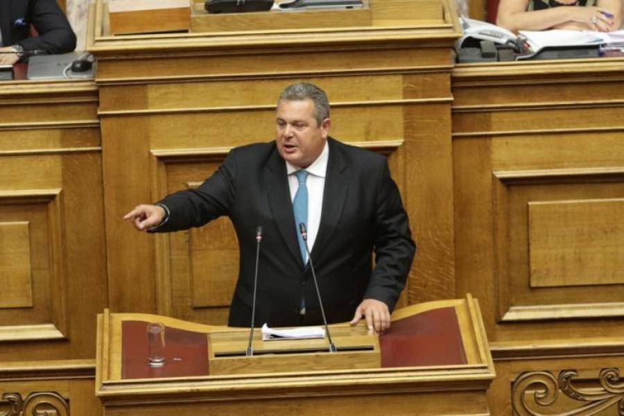 Εν μέσω αντεγκλήσεων με βουλευτές της ΝΔ, ο κ. Καμμένος επανέλαβε τη θέση των ΑΝΕΛ όχι μόνο μη ψήφισης της συμφωνίας εάν έλθει στην Βουλή, αλλά και «κάνοντας τα πάντα για να μην περάσει». Και πρόσθεσε ότι «θα φύγω από την κυβέρνηση όταν βγάλουμε την χώρα από το βάραθρο που την ρίξατε εσείς και το ΠΑΣΟΚ».