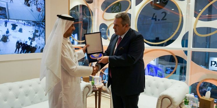 Ο Υπουργός Εθνικής Άμυνας Πάνος Καμμένος, ο οποίος επισκέπτεται το Άμπου Ντάμπι, μετά από πρόσκληση του ομολόγου του, στο πλαίσιο της Διεθνούς Αμυντικής Έκθεσης IDEX 2017, συναντήθηκε με τον Υπουργό Άμυνας των Φιλιππίνων Delfin Negrillo Lorenzana.