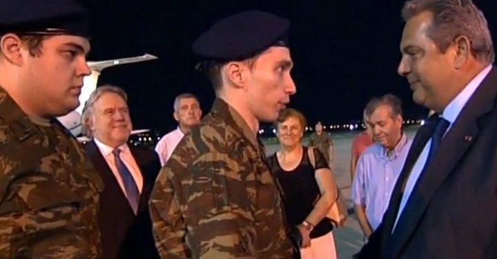 Εκ μέρους των Ενόπλων Δυνάμεων, καλωσορίζω, μαζί με τη στρατιωτική ηγεσία, τον Έλληνα αξιωματικό και τον Έλληνα υπαξιωματικό. Τους συγχαίρω δημόσια, γιατί κράτησαν τον όρκο τους ως πιστοί και φιλότιμοι στρατιώτες, δεν παρέδωσαν τη Σημαία, την υπηρέτησαν σε αυτές τις συνθήκες αιχμαλωσίας και επέστρεψαν στην Ελλάδα για να συνεχίσουν την τήρηση του όρκου που έδωσαν στις Ένοπλες Δυνάμεις.