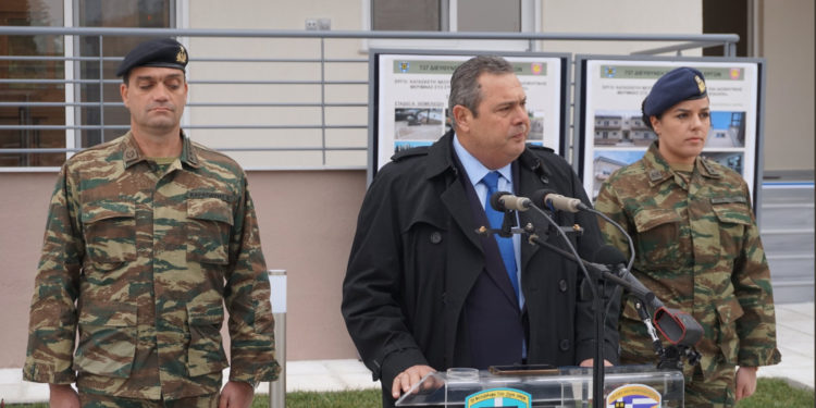 Ο κ. Καμμένος παρέδωσε συγκρότημα 8 κατοικιών για στελέχη των Ενόπλων Δυνάμεων στο στρατόπεδο «Νταλίπη» της Θεσσαλονίκης. Όπως τόνισε ο υπουργός, το όραμα που έθεσε το 2015 για λύση του στεγαστικού προβλήματος των στελεχών των Ενόπλων Δυνάμεων υλοποιείται σταθερά και απρόσκοπτα, παρά τις δυσμενείς οικονομικές συγκυρίες και παρά τον πόλεμο, όπως είπε, που γίνεται στην εξοικονόμηση των πόρων.