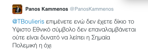 Απαντώντας σ΄ όσους λίγους ,με ακατανόητη εμμονή, προσπαθούν να πείσουν την συντριπτική πλειοψηφία ότι …ξηλώνετε το εθνόσημο, έγραψε στο twitter: