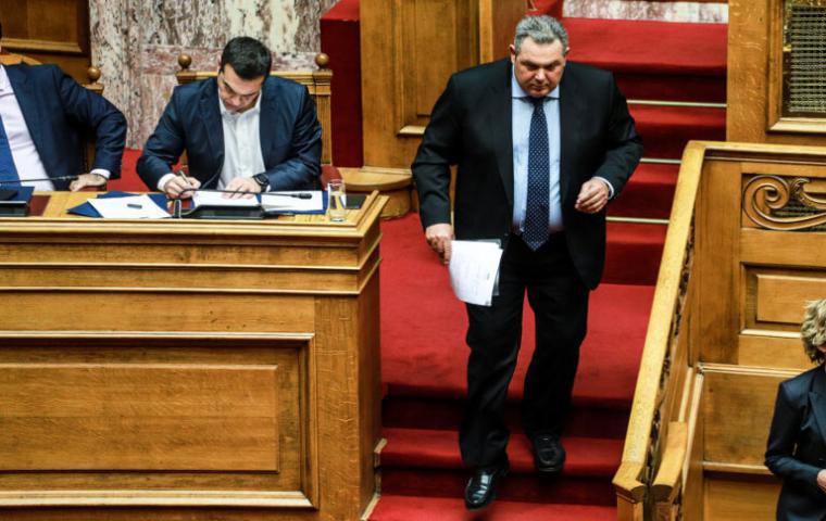 «Εγώ έφυγα από την κυβέρνηση για την Συμφωνία των Πρεσπών. Πρώτοι εμείς το κάναμε. Οι αποστάτες ήταν ήδη συνεννοημένοι». Στο ερώτημα γιατί δεν έφυγε πιο νωρίς είπε: «να ανατρέψω την κυβέρνηση τον Ιούνιο δεν μπορούσα. Δεν είχα τον αριθμό των βουλευτών. Αν αποσυρόμουν από την κυβέρνηση θα έκανα το χατήρι της ΝΔ. Και έστω ότι ανατρεπόταν η κυβέρνηση. Και έβγαινε ο Μητσοτάκης. Πάλι Βόρεια Μακεδονία θα λεγόταν. Ήθελε να ρίξω την κυβέρνηση για να μην βγει η χώρα από τα μνημόνια. Θα γινόμουν ήρωας. Αλλά επέλεξα τον δρόμο της ευθύνης. θα έπαιρνα 15% στις εκλογές. Δεν είμαι στην πολιτική με μικροπολιτικά κριτήρια».