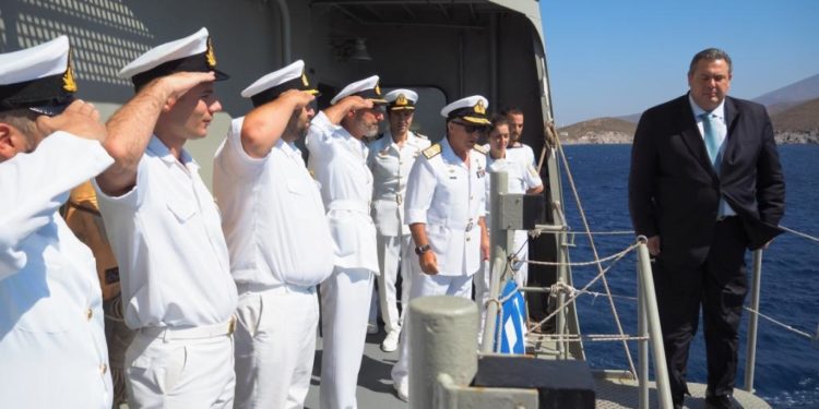 Στο πλαίσιο των εκδηλώσεων κατέπλευσε η Φρεγάτα Ψαρά, απ΄ όπου και η φωτογραφία του ΥΕΘΑ Πάνου Καμμένου. Και είναι κυριολεκτικά αυτό που λέμε “μια φωτογραφία 1000 λέξεις”.