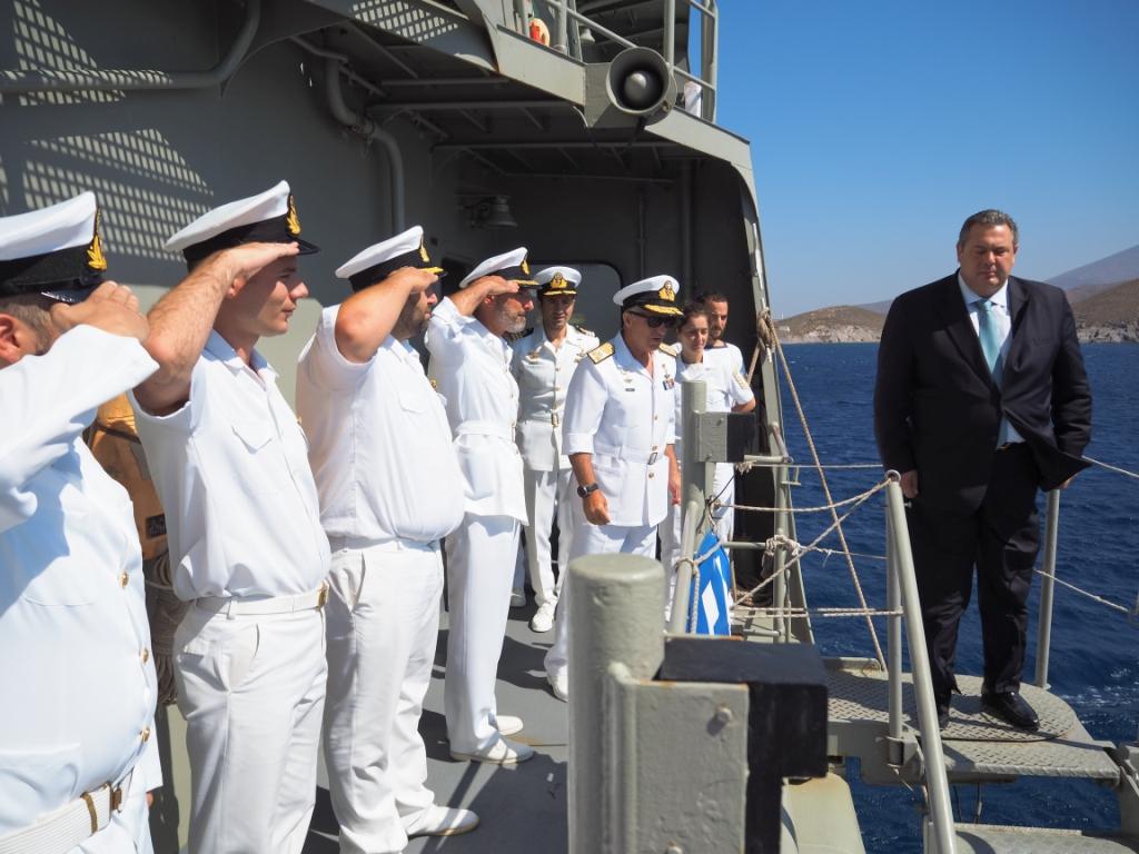 Στο πλαίσιο των εκδηλώσεων κατέπλευσε η Φρεγάτα Ψαρά, απ΄ όπου και η φωτογραφία του ΥΕΘΑ Πάνου Καμμένου. Και είναι κυριολεκτικά αυτό που λέμε “μια φωτογραφία 1000 λέξεις”.