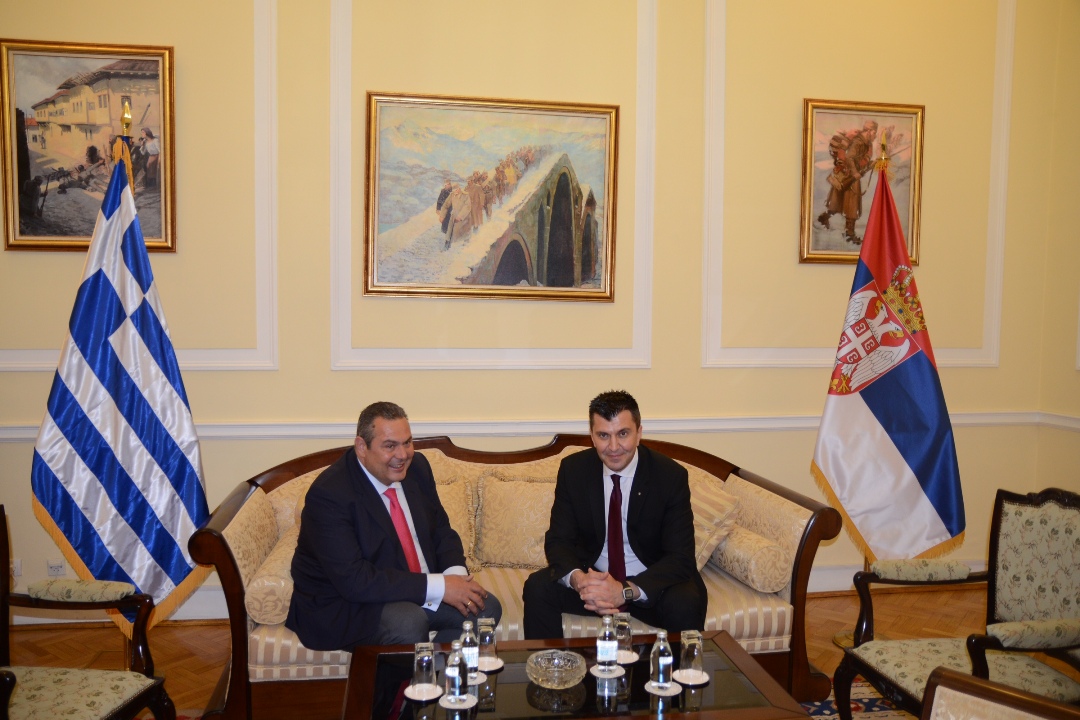 Συνάντηση με τον Σέρβο ομόλογό του Zoran Djordjevic είχε στο Βελιγράδι ο υπουργός Εθνικής Άμυνας Πάνος Καμμένος, στο πλαίσιο της επίσημης επίσκεψης που πραγματοποιεί στην σερβική πρωτεύουσα.