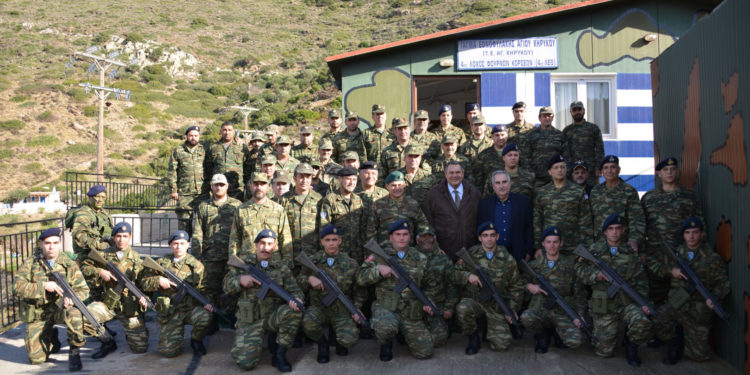 Στο φυλάκιο των Ψαρών συνομίλησε για αρκετή ώρα με τα στελέχη, τους στρατεύσιμους και τους εθνοφύλακες.
