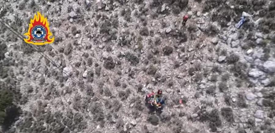 Μεταφορά με ελικόπτερο Super Puma από διασώστες του Πυροσβεστικού Σώματος τραυματισμένου νεαρού ατόμου από χαράδρα στο όρος Βαράσοβα Ναυπακτίας.