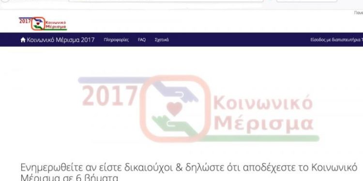 Λήγει αύριο (12.12.2017) τα μεσάνυχτα η προθεσμία για την υποβολή αίτησης για το Κοινωνικό Μέρισμα. Η πληρωμή είναι προγραμματισμένη για την προσεχή Παρασκευή 15 Δεκεμβρίου.