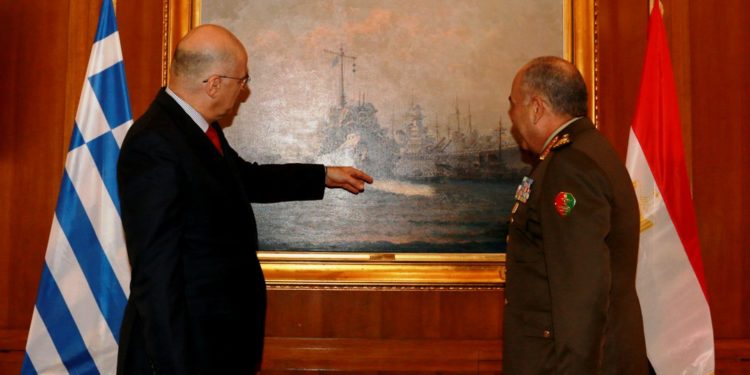 Μετά τις πρώτες φράσεις διπλωματικής αβρότητας, ο Αιγύπτιος αντιστράτηγος ρώτησε τον κ. Δένδια τι απεικονίζει ο πίνακας. «Είναι ένα ελληνικό πολεμικό πλοίο που καταστράφηκε στον Β’ Παγκόσμιο Πόλεμο. Καταστράφηκε το μπροστινό μέρος του κοντά στα Δωδεκάνησα και κατάφερε να στρίψει και να επιστρέψει στην Αλεξάνδρεια», απάντησε ο υπουργός Εθνικής Άμυνας.