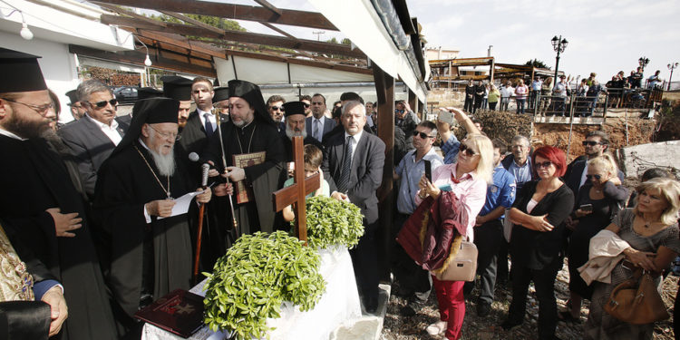 Τρισάγιο στην Αργυρά Ακτή, στο Μάτι, τέλεσε σήμερα το πρωί ο Οικουμενικός Πατριάρχης Βαρθολομαίος, στη μνήμη των θυμάτων της φονικής πυρκαγιάς της 23ης Ιουλίου.