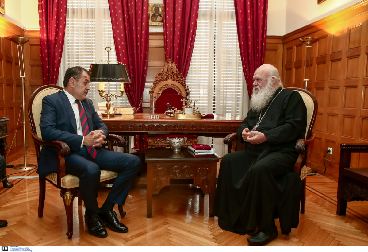 Ο Υπουργός Εθνικής Άμυνας κ. Νικόλαος Παναγιωτόπουλος, είχε σήμερα εθιμοτυπική συνάντηση με τον Μακαριώτατο Αρχιεπίσκοπο Αθηνών και Πάσης Ελλάδος και Πρόεδρος της Ιεράς Συνόδου Ιεραρχίας κ.κ. Ιερώνυμο Β΄.