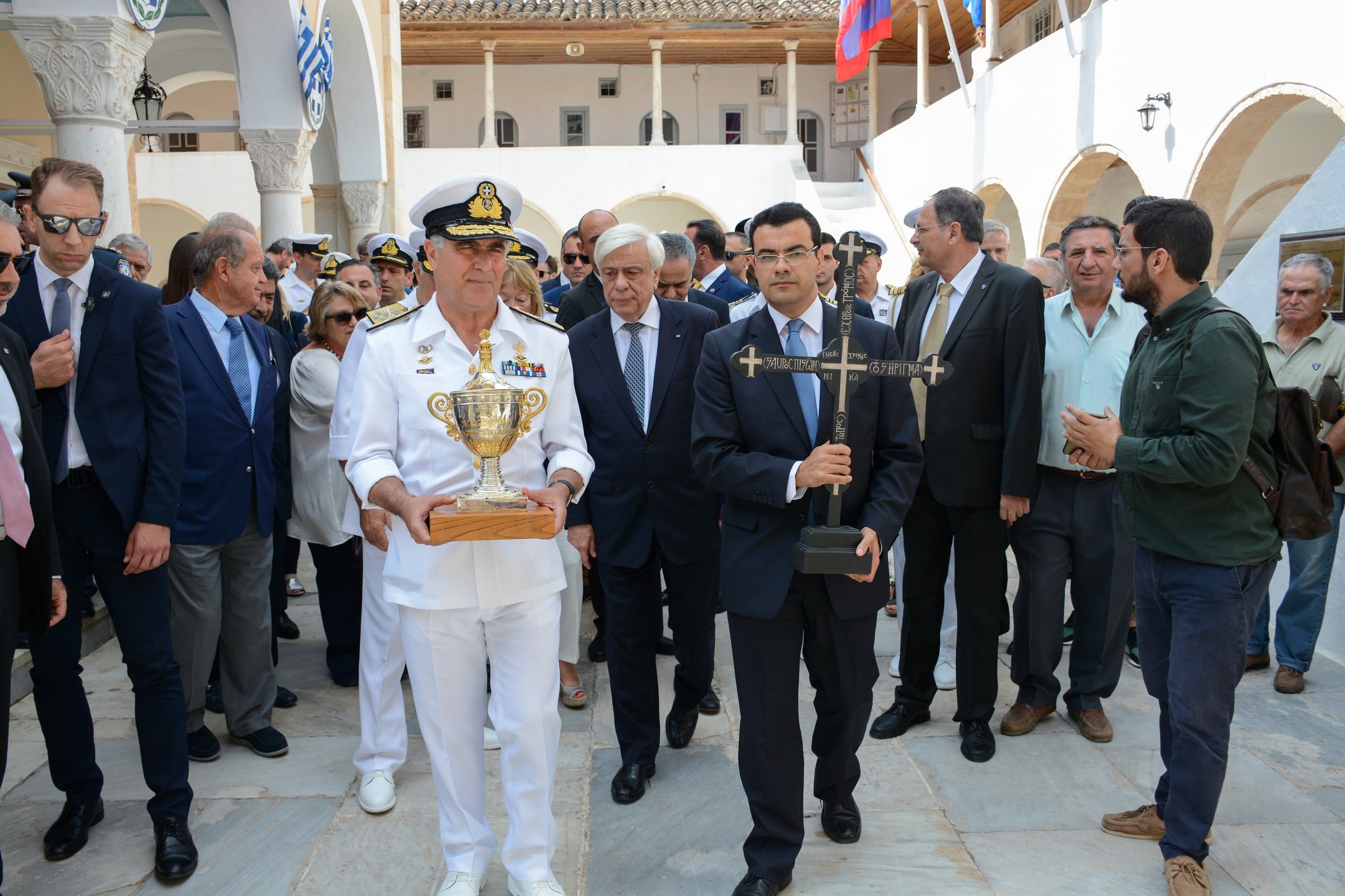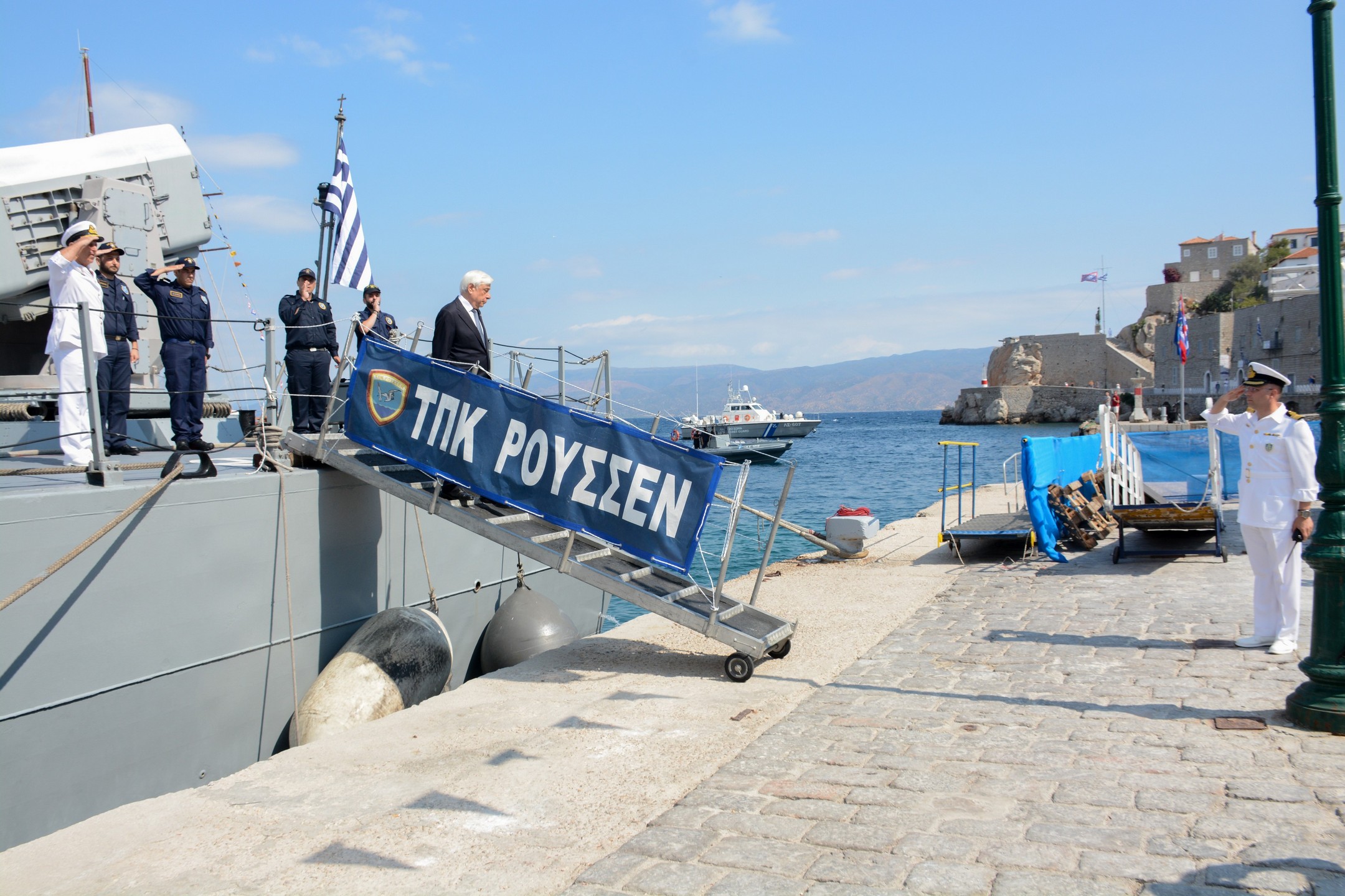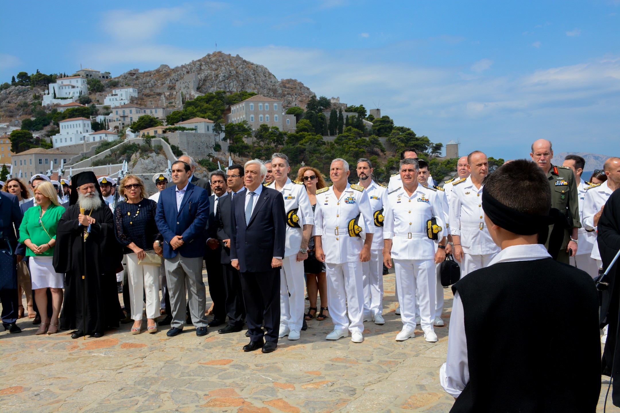 Στις εκδηλώσεις παρέστη και ο Προέδρος της Δημοκρατίας, κ. Προκόπιος Παυλόπουλος, ο οποίος έφτασε στην Ύδρα με το ΤΠΚ ΡΟΥΣΣΕΝ.