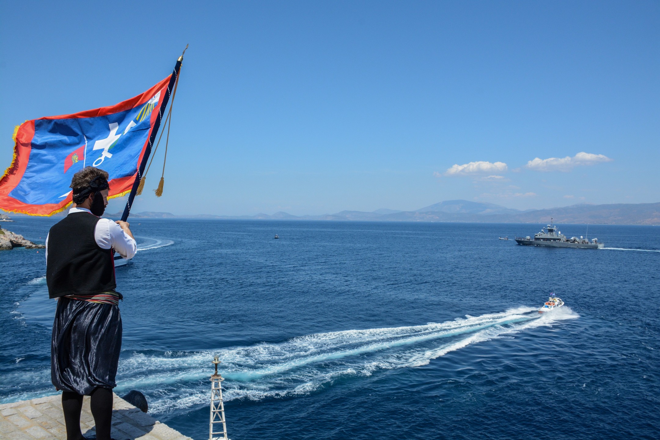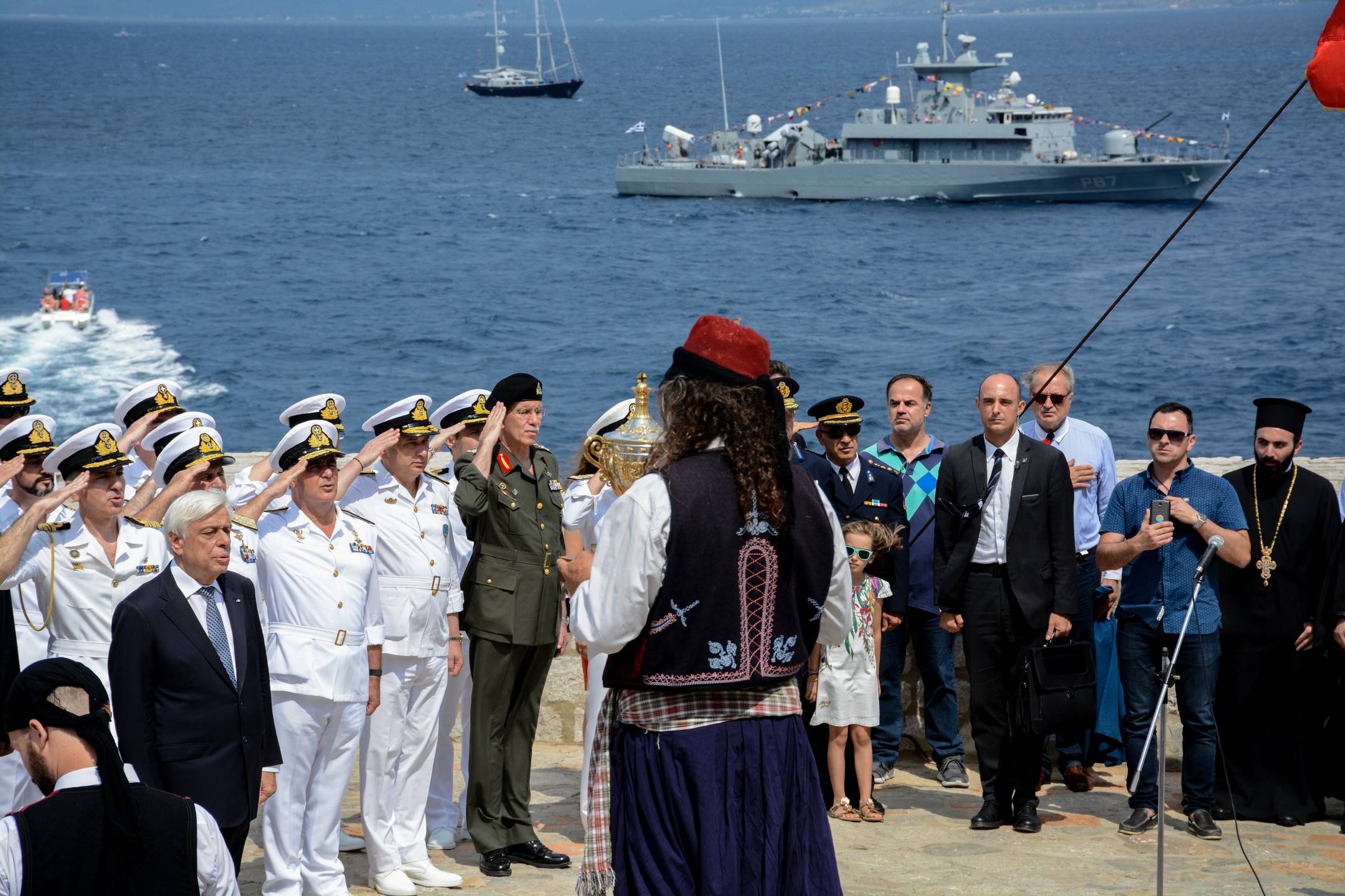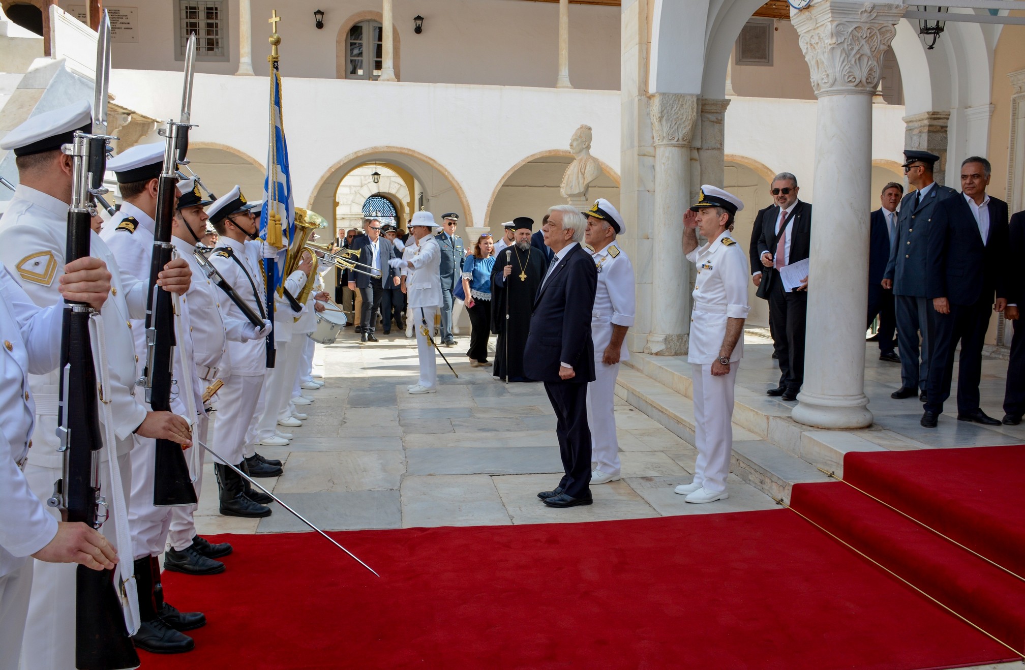 Στις εκδηλώσεις παρέστη και ο Προέδρος της Δημοκρατίας, κ. Προκόπιος Παυλόπουλος, ο οποίος έφτασε στην Ύδρα με το ΤΠΚ ΡΟΥΣΣΕΝ.