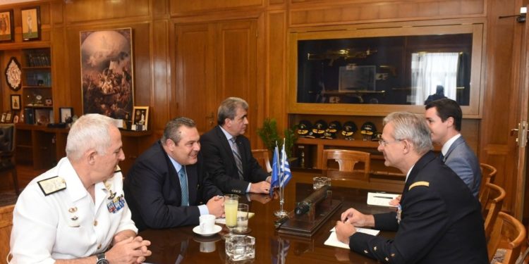 Συνάντηση με τον Ανώτατο Συμμαχικό Διοικητή Μετασχηματισμού (Supreme Allied Commander Transformation) του ΝΑΤΟ, Στρατηγό Denis Mercier, ο οποίος πραγματοποιεί επίσημη επίσκεψη στην Ελλάδα είχαν σήμερα στο υπουργείο Εθνικής Άμυνας ο ΥΕΘΑ Πάνος Καμμένος και ο Αρχηγός ΓΕΕΘΑ Ναύαρχος Ευάγγελος Αποστολάκης ΠΝ με αντικείμενο συζήτησης θέματα αρμοδιότητας του Νατοϊκού Διοικητή.