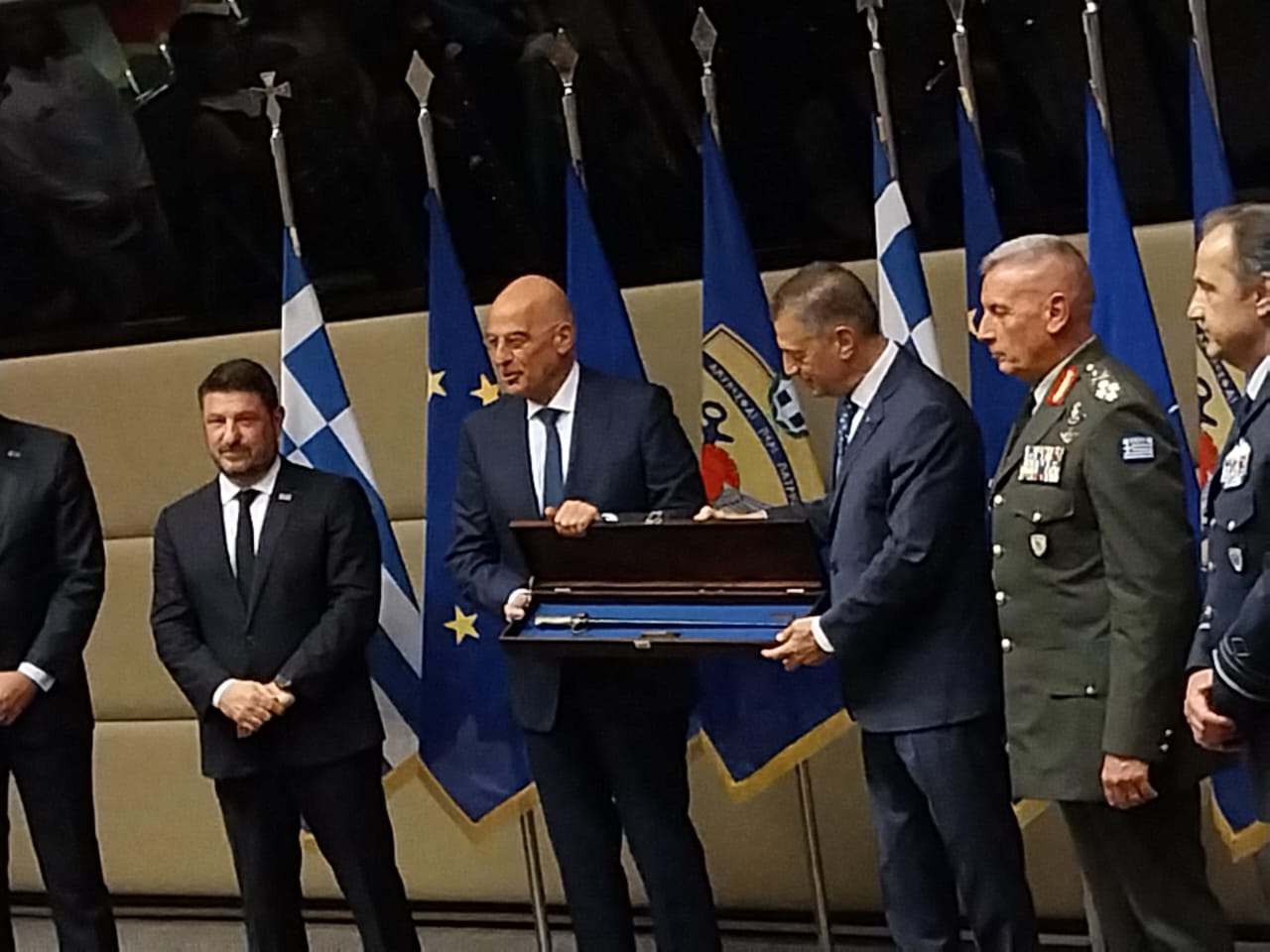 «Η Ελλάδα ιστορικά κρατά κλάδο ελαίας αλλά και ξίφος δικαίου μη επιτρέποντας σε κανένα. να επιβουλεύεται τα κυριαρχικά μας δικαιώματα», δήλωσε χαρακτηριστικά ο κ. Δένδιας. Όπως είπε ο υπουργός Άμυνας η Ελλάδα επιζητά αρμονικες σχέσεις με τις γειτονικές της χωρες.