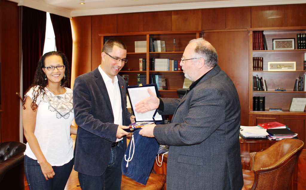 O ANΥΕΘΑ Κώστας Ήσυχος συναντήθηκε στο γραφείο του με τον αντιπρόεδρο της Βολιβαριανής Δημοκρατίας της Βενεζουέλας, Χόρχε Αρρεάσα, ο οποίος συνοδευόταν από τον πρέσβη της Βενεζουέλας στην Αθήνα Φαρίντ Φερνάντες.