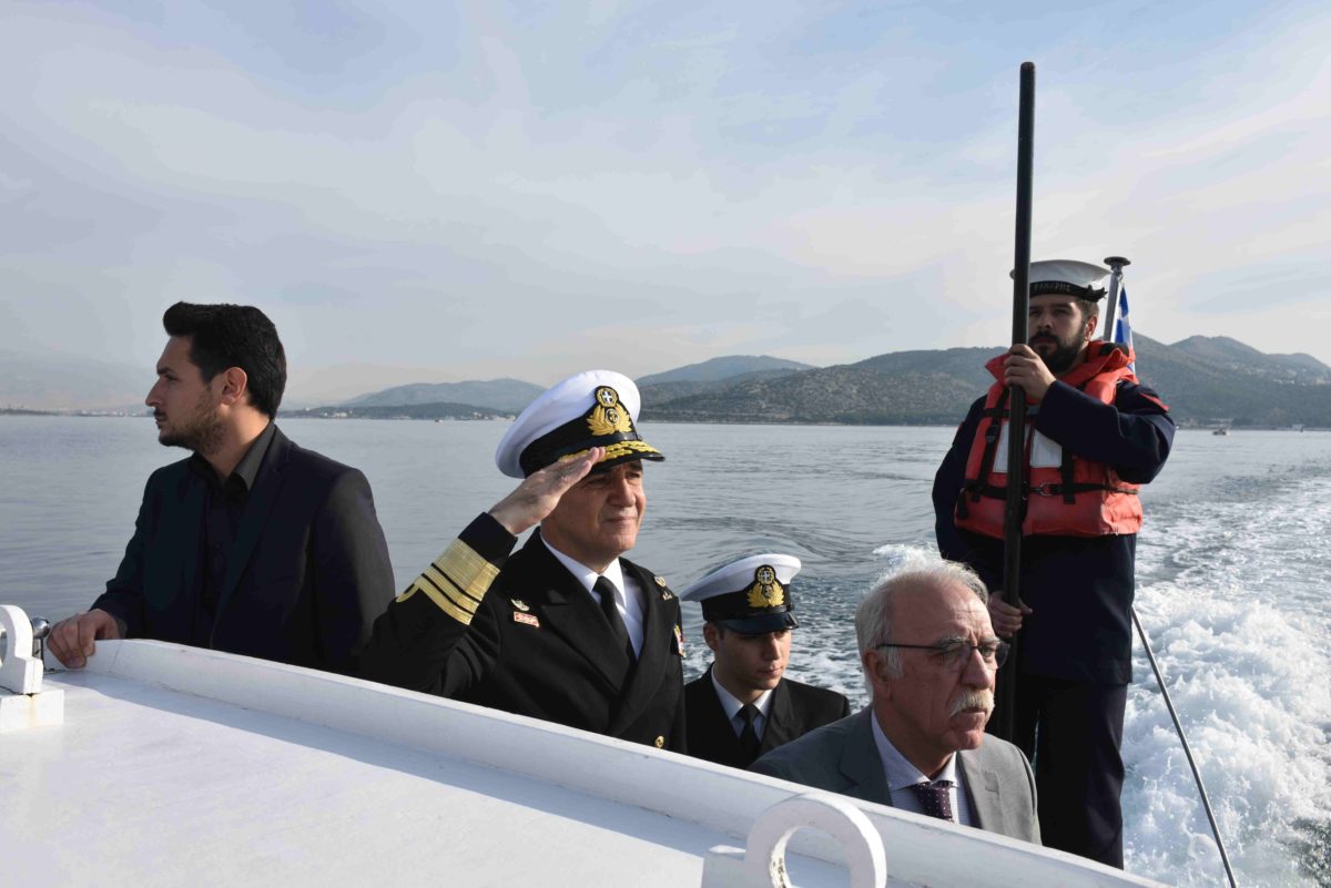 Στη φωτογραφία του Νίκου Παναγιωτόπουλου ο Δήμητρης Βίτσας στον πρώτο του «πλού» για τον Ναύσταθμο Σαλαμίνας.