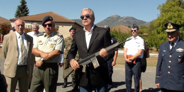 Ο υπουργός Εθνικής Άμυνας Δημήτρης Αβραμόπουλος “είχε πάρει τ΄ όπλο του” στην επίσκεψή του στο κέντρο νεοσυλλέκτων της Τρίπολης.