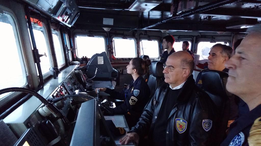 Ο ΥΕΘΑ Νίκος Δένδιας στο φουρτουνιασμένο όχι μόνο λόγω καιρικών συνθηκών Αιγαίο. Εδώ και λίγες ώρες ο κ.Δένδιας επιβαίνει της φρεγάτας ΝΑΒΑΡΙΝΟ μαζί με τον Α/ΓΕΝ και τον Αρχηγό Στόλου. Οι δυο πρώτες φωτογραφίες ανέβηκαν στο προσωπικό του λογαριασμό στο twitter.