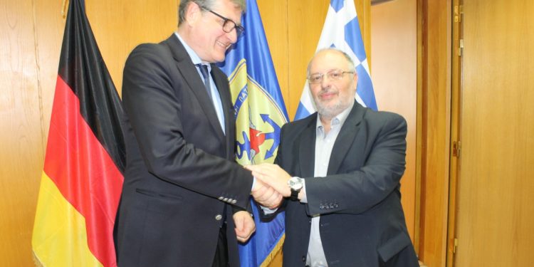 “Ο Αναπληρωτής Υπουργός Εθνικής Άμυνας Κώστας Ήσυχος συναντήθηκε σήμερα Πέμπτη 21 Μαΐου 2015 στο Υπουργείο Εθνικής Άμυνας με τον Πρέσβη της Γερμανίας στην Ελλάδα Peter Schoof. Κατά τη διάρκεια της συνάντησης συζητήθηκαν θέματα κοινού ενδιαφέροντος και οι δύο πλευρές είχαν την ευκαιρία για μια ενδιαφέρουσα ανταλλαγή απόψεων”.