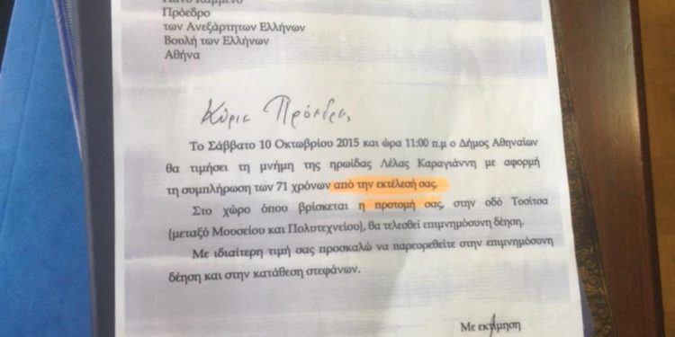 Τουλάχιστον δεν έχει χαθεί το χιούμορ πάντως αν κρίνουμε από το πως αντιμετώπισε ο Καμμένος το λάθος στην πρόσκληση που το έστειλαν από το δήμο Αθηναίων για να παραστεί στην τελετή αποκαλυπτηρίων της …προτομής του! Η πρόσκληση αφορούσε στην τελετή αποκαλυπτηρίων της πορτομής της Λέλας Καραγιάνη αλλά ο …δαίμων του τυπογραφείου έκανε λάθος. Διαβάστε πως το σχολίασε ο Καμμένος στο twitter.