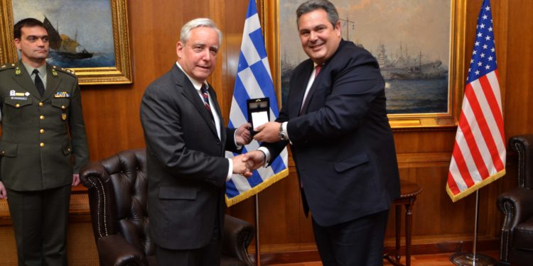 Ο Πρόεδρος των ΑΝΕΞΑΡΤΗΤΩΝ ΕΛΛΗΝΩΝ και Υπουργός Εθνικής Άμυνας Πάνος Καμμένος συναντήθηκε με τον Αμερικανό πρέσβη στο πλαίσιο του εορτασμού της Ημέρας Ανεξαρτησίας των ΗΠΑ.