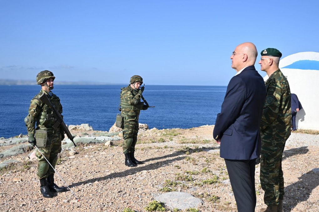Ο Υπουργός Εθνικής Άμυνας, Νίκος Δένδιας συνέχισε σήμερα, Μεγάλη Πέμπτη 2 Μαΐου 2024, την επίσκεψή του σε νησιά των Δωδεκανήσων, συνοδευόμενος από τον Αρχηγό ΓΕΕΘΑ Στρατηγό Δημήτριο Χούπη και τον Αρχηγό ΓΕΣ Αντιστράτηγο Γεώργιο Κωστίδη.