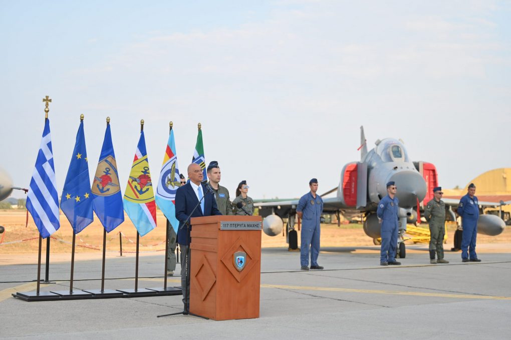 «Βρισκόμαστε εδώ για να θυμίσουμε κατ’ αρχήν, πώς ξεκίνησαν όλα την Παρασκευή 5 Απρίλιου 1974, όταν τα πρώτα έξι F-4 Phantom προσγειώθηκαν εδώ, στην 117 Πτέρυγα Μάχης. Και να φέρουμε πάλι στη μνήμη των νεότερων όλες εκείνες τις στιγμές που άνθρωποι και μηχανήματα έγιναν ένα για την προστασία της Πατρίδας, καταγράφοντας άπειρες ώρες πτήσεων και να τιμήσουμε όλους εκείνους που προσέφεραν σε αυτήν την προσπάθεια», δήλωσε ο Νίκος Δένδιας..