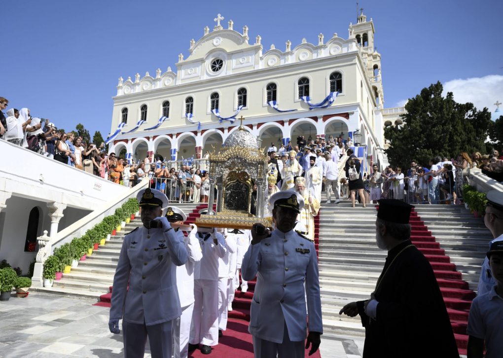 Η Ορθοδοξία τιμά την Κοίμηση της Θεοτόκου. Την κορυφαία Θεομητορική Εορτή. Η Μεγαλόχαρη, η διαχρονική Μητρική Εικόνα και Παρουσία, αποτελεί σημείο αναφοράς του απανταχού Ελληνισμού. Και από εκεί στη συνείδηση του Έθνους το πνευματικό στήριγμα στις δύσκολες στιγμές. Γιατί νομίζω θυμόμαστε όλοι ότι η Παναγία είναι η Προστάτιδα των Ενόπλων μας Δυνάμεων.