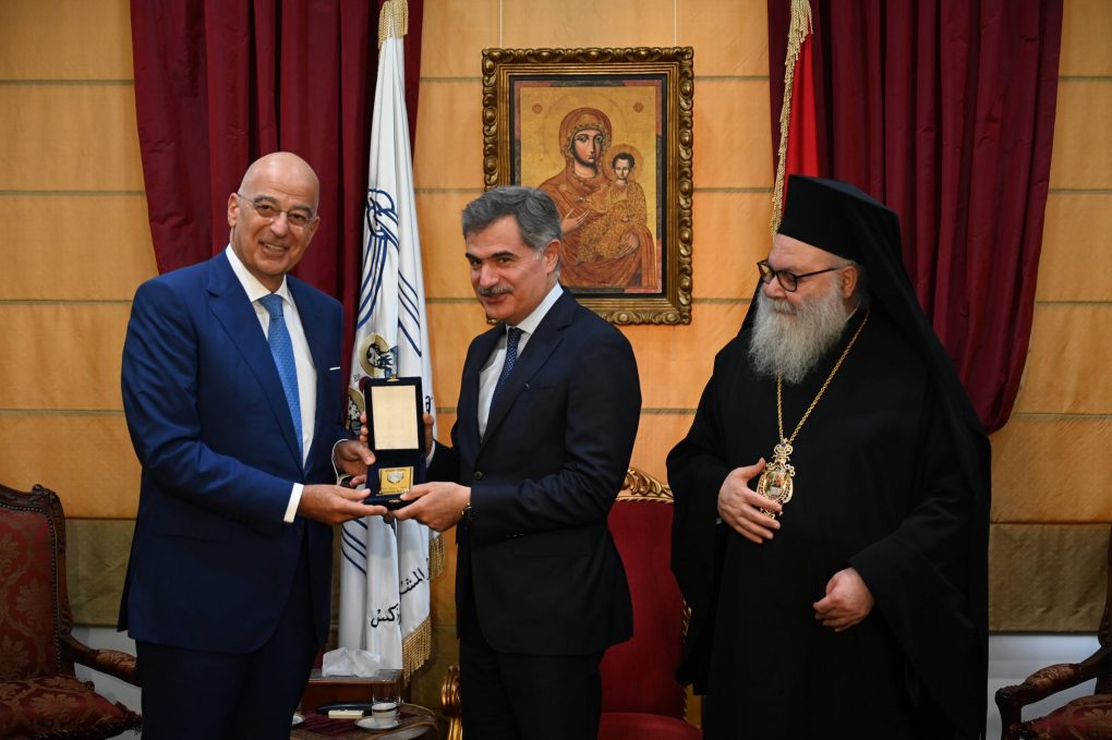 Ο υπουργός Εθνικής Άμυνας, Νίκος Δένδιας, συναντήθηκε σήμερα, με τον Πατριάρχη Αντιοχείας κ.κ. Ιωάννη Ι’, στην Πατριαρχική έδρα, στο Μπαλαμάντ, στον Βόρειο Λίβανο, συνοδευόμενος από τον γενικό γραμματέα Θρησκευμάτων, Γιώργο Καλαντζή.