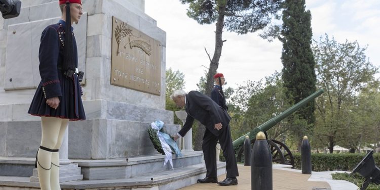 Το πρόγραμμα των εκδηλώσεων ξεκίνησε στις 10.25 το πρωί στο ηρώο του Γ’ Σώματος Στρατού με κατάθεση στεφάνου από τον Πρόεδρο της Δημοκρατίας Προκόπη Παυλόπουλο. Στην τελετή παραβρέθηκε και ο Πρόεδρος της Ιταλικής Δημοκρατίας.