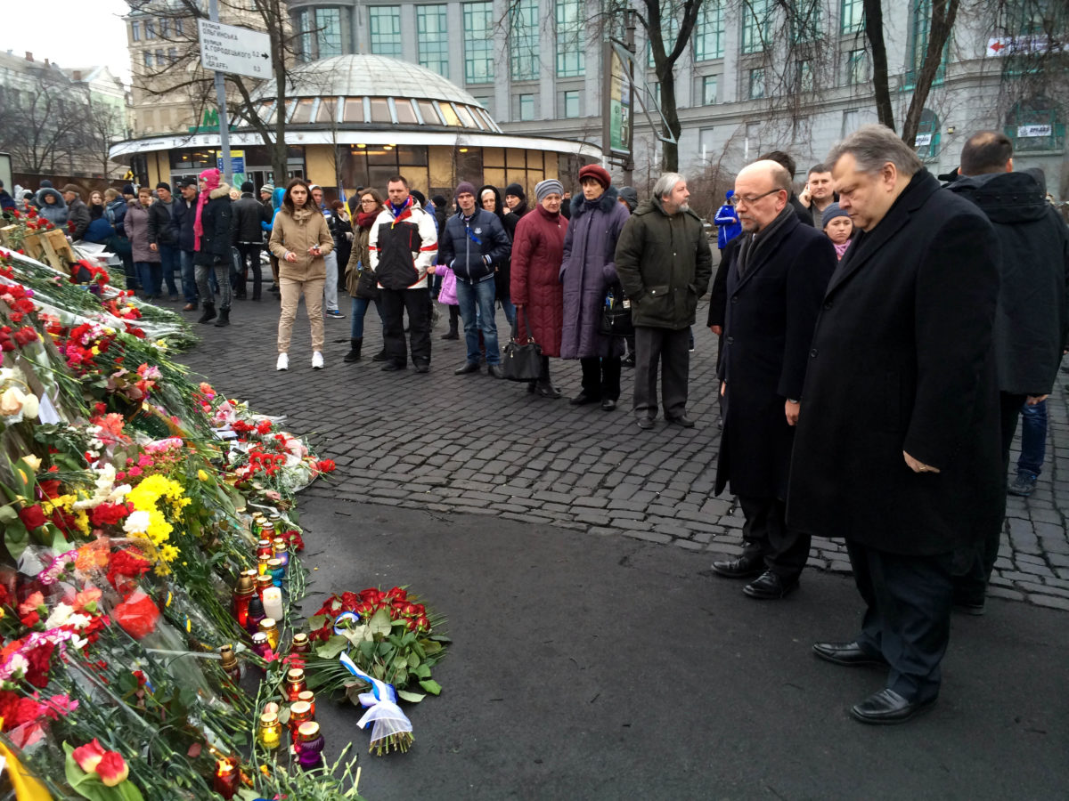 Ο υπουργός Εξωτερικών διαβεβαίωσε τους εκπροσώπους των ομογενών ότι <<η Ελλάδα σας έχει υπό την απόλυτη κάλυψη και προστασία της>> και ότι «θα αξιοποιήσουμε όλες τις δυνατότητες που έχουμε, εθνικές και ευρωπαϊκές, ώστε να έχετε αυτή την προστασία, αυτή την φροντίδα που πρέπει να έχετε, τις δύσκολες στιγμές που ζείτε», δήλωσε στέλνοντας καθαρό και σαφές μήνυμα, ενώ στη συνέχεια θα επισκεφθεί το Κίεβο όπου θα έχει συνομιλίες με τη νέα ηγεσία της χώρας, με τον Πρωθυπουργό, με τον Υπουργό Εξωτερικών και τον Πρόεδρο της Βουλής