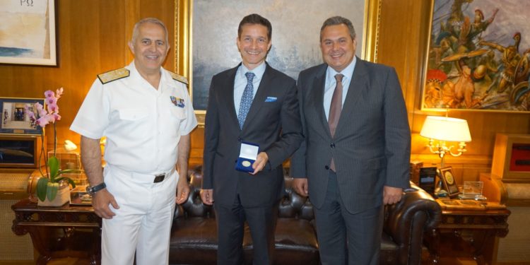 Ο Υπουργός Εθνικής Άμυνας Πάνος Καμμένος και ο Αρχηγός ΓΕΕΘΑ Ναύαρχος Ευάγγελος Αποστολάκης ΠΝ συναντήθηκαν με τον πρόεδρο του Ocean Learning Center (OLC ) Fabien Cousteau, εγγονό του διάσημου ωκεανογράφου Jacques-Yves Cousteau, συζητώντας θέματα συνεργασίας του OLC με το Υπουργείο Εθνικής Άμυνας και το Πολεμικό Ναυτικό.