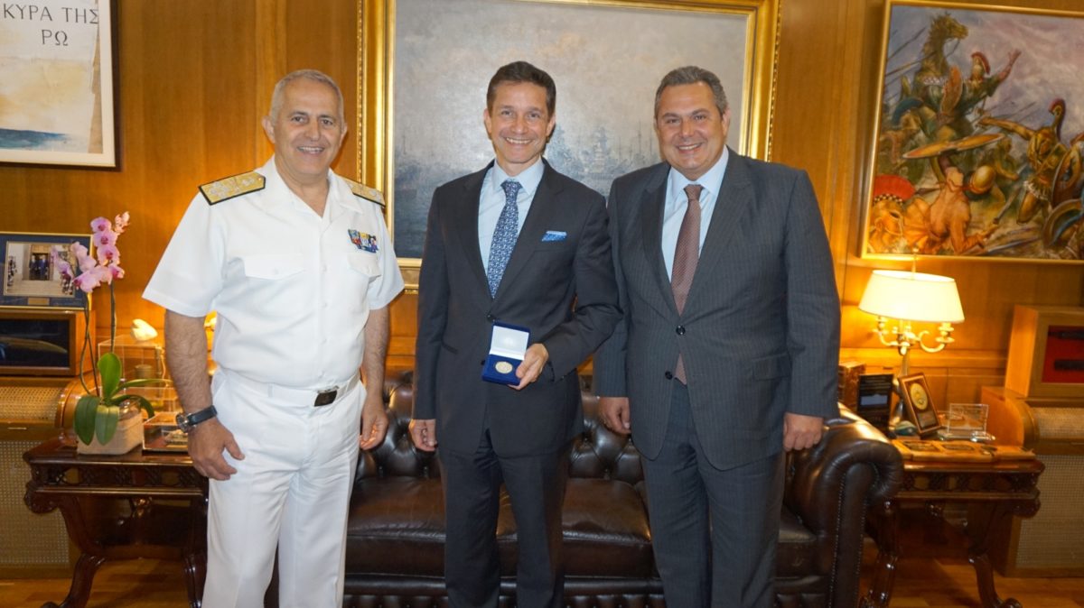Ο Υπουργός Εθνικής Άμυνας Πάνος Καμμένος και ο Αρχηγός ΓΕΕΘΑ Ναύαρχος Ευάγγελος Αποστολάκης ΠΝ συναντήθηκαν με τον πρόεδρο του Ocean Learning Center (OLC ) Fabien Cousteau, εγγονό του διάσημου ωκεανογράφου Jacques-Yves Cousteau, συζητώντας θέματα συνεργασίας του OLC με το Υπουργείο Εθνικής Άμυνας και το Πολεμικό Ναυτικό.