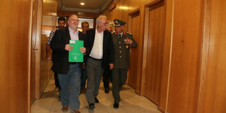 Αμέσως μετά από τους αποχαιρετισμούς και τα καλοσωρίσματα στην αίθουσα Τιμών Ήσυχος και Βίτσας ανέβηκαν στο γραφείο το ΑΝΥΕΘΑ,με τον κ.Βίτσα όπως προκύπτει και από τη φωτογραφία να έχει ήδη τον Α/ΓΕΕΘΑ δίπλα του για την ενημέρωση από το διάδρομο ακόμη.