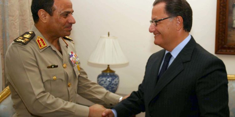 Ο Υπουργός Εθνικής Άμυνας, Πάνος Παναγιωτόπουλος, ο οποίος συνοδεύει τον Πρόεδρο της Δημοκρατίας, Κάρολο Παπούλια στην τριήμερη, επίσημη επίσκεψή του στην Αίγυπτο, είχε κατ’ ιδίαν συνάντηση με τον Υπουργό Άμυνας της Αιγύπτου, Στρατηγό Αμπντέλ Φατάχ Αλ-Σίσι.