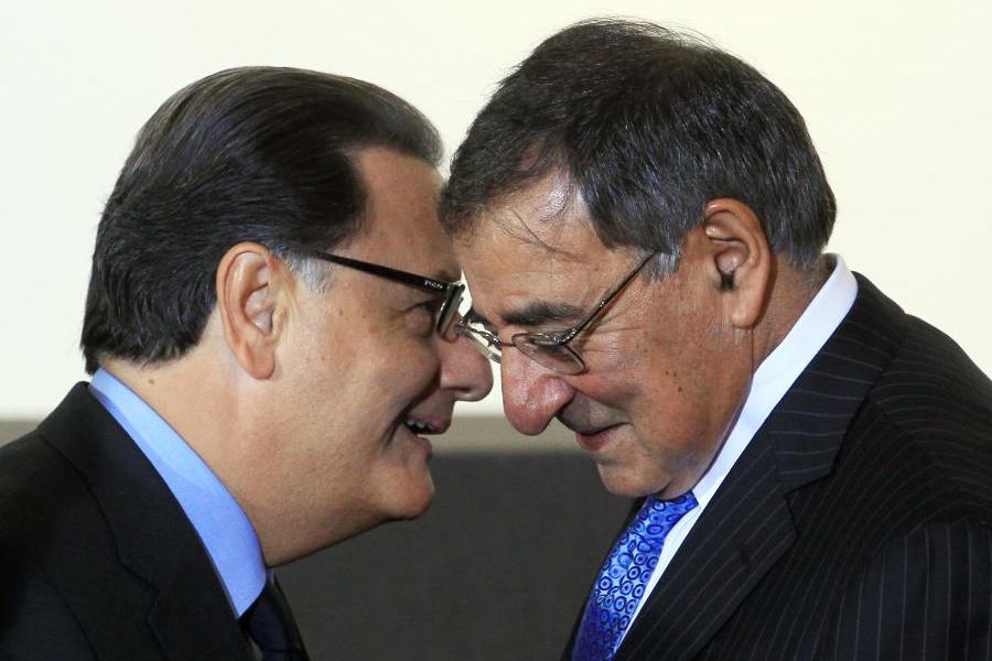 Ο Παναγιωτόπουλος είχε συνομιλία και με τον Αμερικανό υπουργό Άμυνας Λέον Πανέττα. Στη φωτογραφία είναι χαμογελαστοί. Να είπαν για τα Abrams; Δύσκολο…