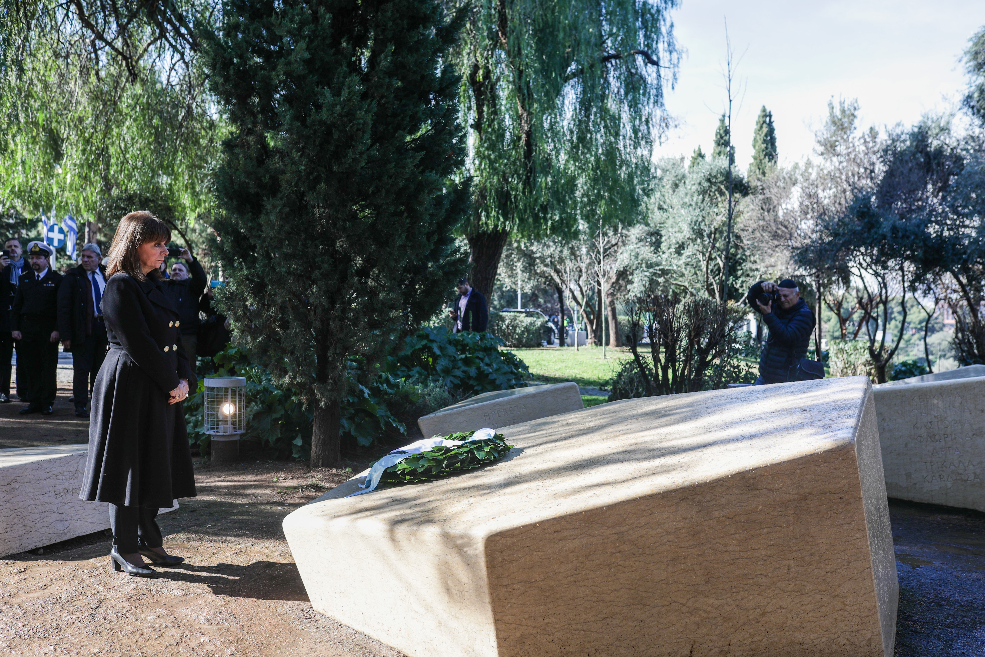 Η Πρόεδρος της Δημοκρατίας, Κατερίνα Σακελλαροπούλου, με αφορμή την Ημέρα Μνήμης Ελλήνων Εβραίων Μαρτύρων και Ηρώων του Ολοκαυτώματος, κατέθεσε στεφάνι στο Μνημείο Ολοκαυτώματος στο Θησείο, τιμώντας όλους εκείνους που έχασαν τη ζωή τους στα ναζιστικά στρατόπεδα συγκέντρωσης.