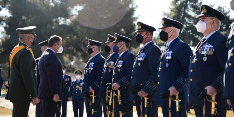 Ο ΥΕΘΑ, κ. Νικόλαος Παναγιωτόπουλος, παρέστη σήμερα, Παρασκευή 4 Φεβρουάριου 2022, στην τελετή παραδόσεως – παραλαβής καθηκόντων του Αρχηγείου Τακτικής Αεροπορίας (ΑΤΑ), που πραγματοποιήθηκε στην Αεροπορική Βάση Λάρισας κατά την οποία, ο Αρχηγός ΓΕΑ Αντιπτέραρχος (Ι) Θεμιστοκλής Μπουρολιάς παρέδωσε τα καθήκοντα του στον Αντιπτέραρχο (Ι) Γεώργιο Φασούλα.