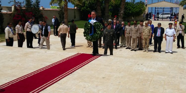 Ο Υπουργός Εθνικής Άμυνας Πάνος Καμμένος, ολοκληρώνοντας την επίσημη επίσκεψή του στην Αίγυπτο, κατέθεσε στεφάνι στο μνημείο των Ελλήνων Πεσόντων στο Ελ Αλαμέιν.