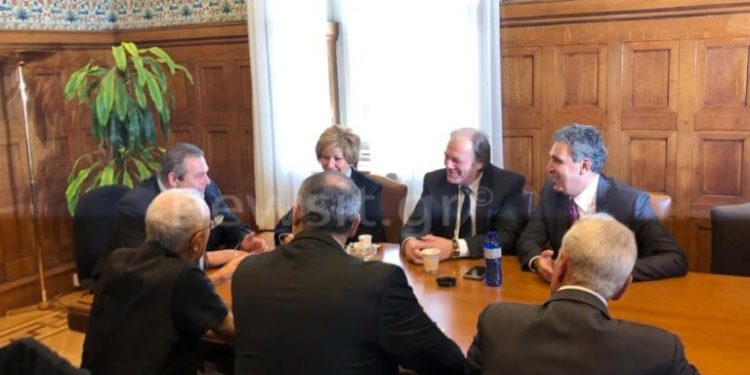 Ο Πάνος Καμμένος κάθισε στη μια πλευρά του τραπεζιού και ο Θανάσης Παπαχριστόπουλος από την άλλη. Όταν οι δημοσιογράφοι τους επεσήμαναν ότι κάθισαν… απέναντι, η απάντησή τους ήταν «έτσι καθόμαστε πάντα».