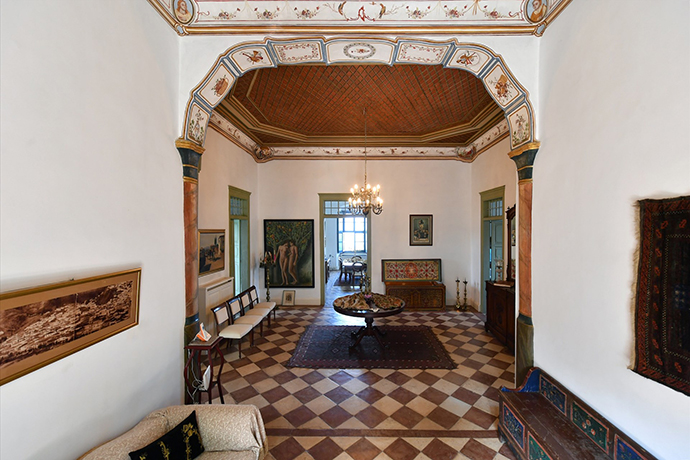«Το ακίνητο αποτελείται από το κύριο κτίσμα και κάποια κτίρια ακόμη τα οποία είναι τοποθετημένα γύρω από μια εσωτερική πέτρινη αυλή που προσφέρει ιδιωτικότητα και υπόσχεται στιγμές χαλάρωσης. Η μοναδική τοποθεσία του ακινήτου προσφέρει, από τα περισσότερα σημεία του, εκπληκτική θέα στο Αιγαίο. Μόλις μπείτε στο αρχοντικό και στο κύριο σαλόνι, αισθάνεστε αμέσως το σταυροδρόμι των πολιτισμών και των χρωμάτων. Εδώ το παρελθόν και το παρόν ζουν μαζί και αρμονικά» αναφέρει η αγγελία.