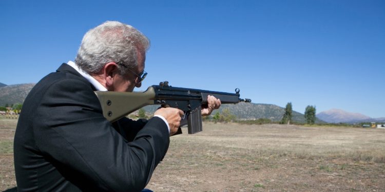 «Στα όπλα» ο υπουργός Εθνικής Άμυνας Δημήτρης Αβραμόπουλος. Επισκεπτόμενος το κέντρο νεοσυλλέκτων στη Τρίπολη ο ΥΕΘΑ , επισκέφθηκε και το πεδίο βολής. Εκεί πήρε στα χέρια του ένα G 3 κι έκανε κι αυτός τη βολή του. Πόσο εύστοχος ήταν δεν ανακοινώθηκε.