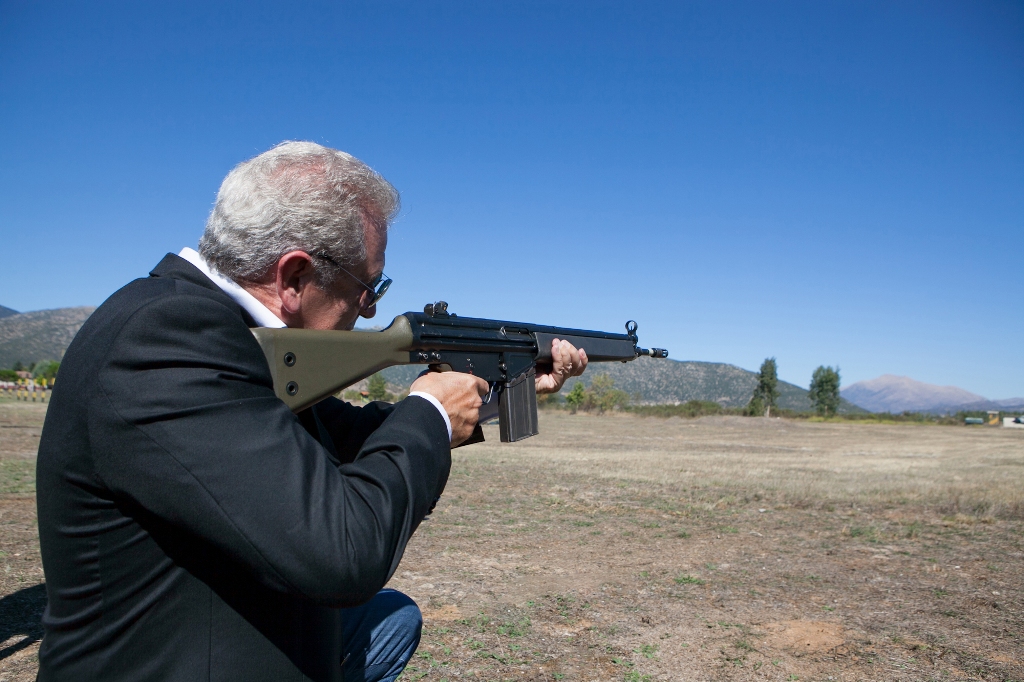 «Στα όπλα» ο υπουργός Εθνικής Άμυνας Δημήτρης Αβραμόπουλος. Επισκεπτόμενος το κέντρο νεοσυλλέκτων στη Τρίπολη ο ΥΕΘΑ , επισκέφθηκε και το πεδίο βολής. Εκεί πήρε στα χέρια του ένα G 3 κι έκανε κι αυτός τη βολή του. Πόσο εύστοχος ήταν δεν ανακοινώθηκε.